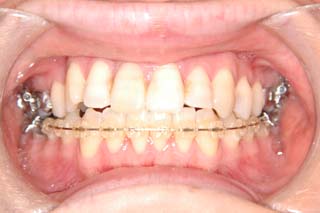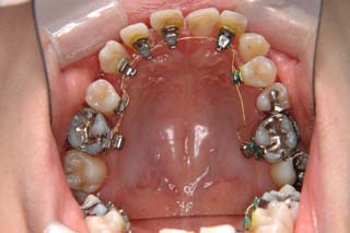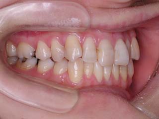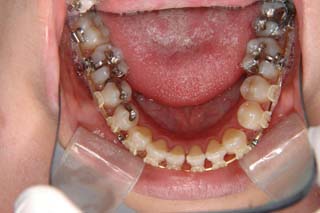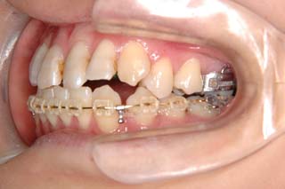 先ずは、大まかなガタガタを取り除く レベリングという治療上のステップです。しばしば最初の不正咬合の時点で見られた、咬耗、隣接面カリエスなどについて、矯正治療と並行しながら、治療・形態修正を行う事があります。斜めに接触している部分のむし歯治療より隙間が有る状態の方がキレイに治せられる事もあります。