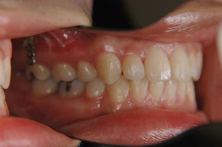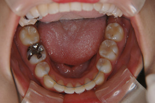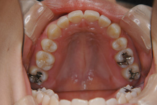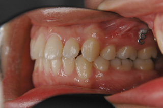 装置撤去です。動的処置は2年弱でしたので、歯の移動させた距離で考慮すると、比較的短い治療期間でした。極めてよい咬合状態が得られたと思います。いずれも強い固定源を利用した結果の成果と考えられます。まだ、オーソアンカー SMAPシステム がそのまま残っているのが見えますが、もう必要ないので撤去して貰う予定です。今後は保定治療に移行し、数年にわたって咬合の安定状態を管理していきます。