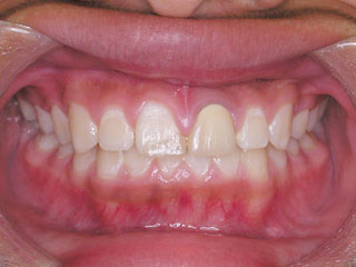 2年半ほどの治療で、装置を撤去し保定治療に移行しています。飛び出ていた前歯も、下の歯と正しく噛めるようになりました。口元の突出も消え、口唇閉鎖時に前歯が覗いて見えるという事も無くなりました。
