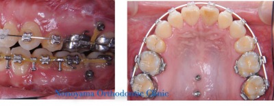 装着方法はアンカースクリューとほとんど変わりません。局所麻酔を行って上顎に専用のアンカースクリューを打ち込み部品を固定します。スクリューの安定が確認されたら、ワイヤーと金属のプレートの装置を装着し調節をいれていきます。