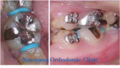 矯正治療では奥歯に金属の輪をはめて接着剤で固定するバンドという部品を使う事が多いです。歯の内側、外側に頑丈に部品を付ける事が出来ます。
