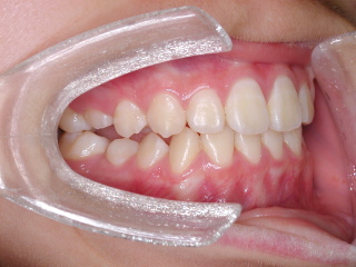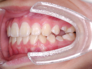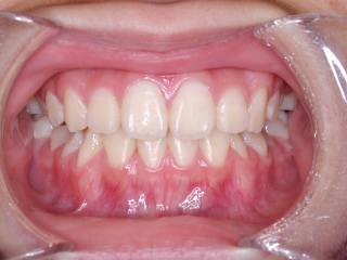 前歯の軽い捻転が有ったので、2-3ヶ月ほどブラケットにて配列し永久歯への交換を待っているところです。顎関節の変化、前歯部被蓋などにも注意を払いながら経過観察を行っています。条件の良いケースでは、早期治療のみで歯列、咬合が確立します。世間では「抜かない矯正」「非抜歯床矯正」と呼ばれているようですが、条件さえ良ければ問題のない治療だと思います。