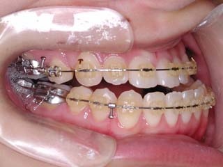 一般的な外科矯正治療の流れは、術前矯正・外科矯正・術後矯正・保定治療と移行します。術前矯正では、手術を行う時点で、上下がぴったり合うような歯列に仕上げる事になりますので、逆に言えば、手術をしていない直前においては、とんでもなく噛めない状態となっている事が多いです。このケースでは下顎のみのセットバック(後退術)をSSROにて行いました。