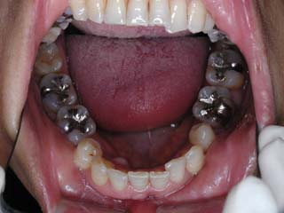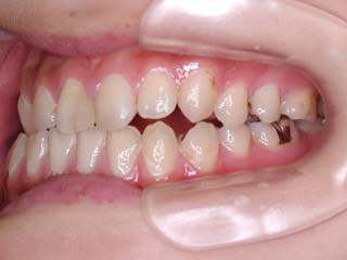 診断名:顎関節症、下顎左右5欠損を伴う骨格性上顎前突