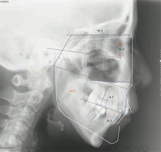 このケースでは、外科手術は、上顎の傾斜の改善をLeFort1にて、下顎の正中の改善をSSROにて行いました。
