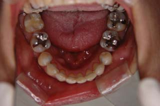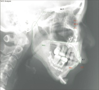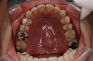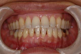 装置撤去です。動的処置はちょうど2年でしたので、通常のマルチブラケット治療とそれほど治療期間は変わりません。手術方法は、上顎のインパクションをLeFort1、下顎の前方移動をSSROで、オトガイの前方移動をジェニオプラスティーで行いました。今後は保定治療に移行し、数年にわたって咬合の安定状態を管理していきます。